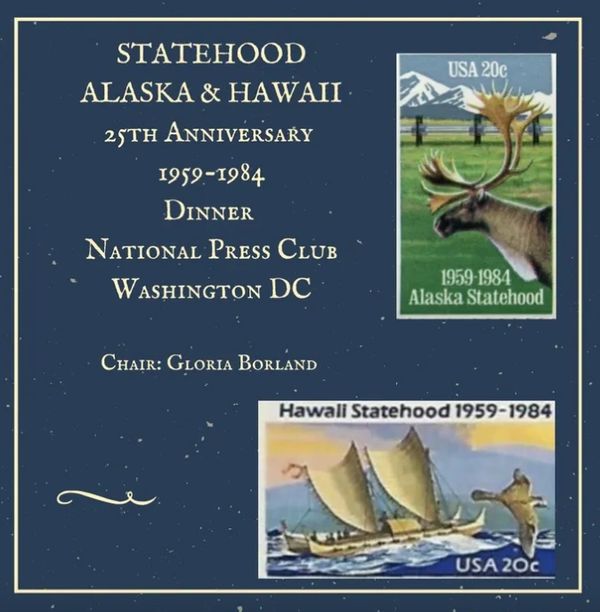 Gloria Borland was born in Kodiak, Alaska and raised in Honolulu, Hawaii. When Gloria was 27, she chaired a GALA Dinner at the National Press Club to celebrate the 25th Anniversary of Statehood for Alaska and Hawaii in 1984. Most of the attendees were over 40. She brought Hawaiian and Alaskan culture to influential members of the Washington Press corps.